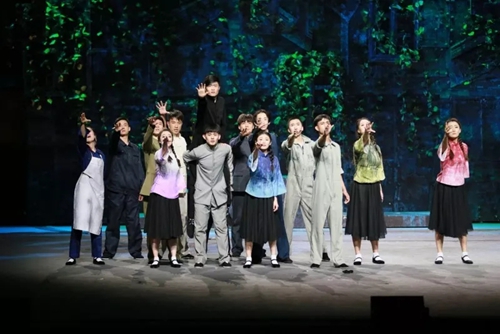 在雄浑的音乐声中,灰色网纱幕布揭开,为观众开启了一个关于理想、青春、信仰和革命的历史故事。